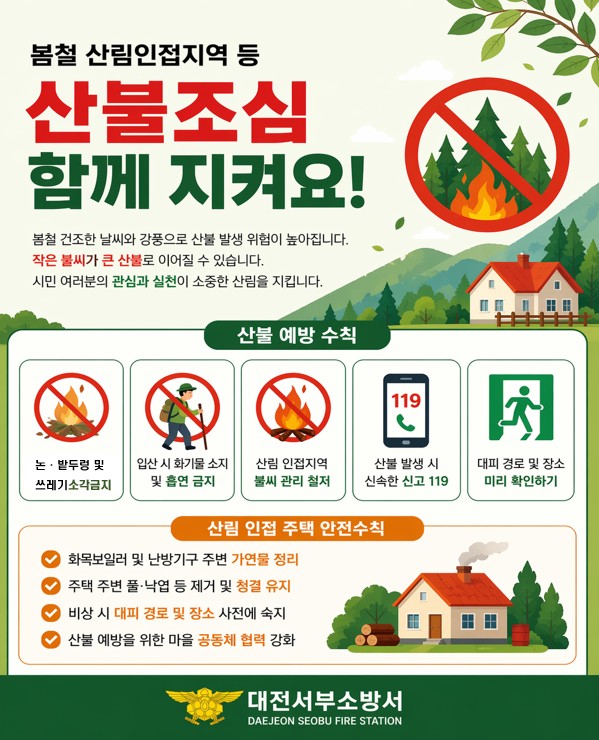 [FPN 정재우 기자] = 대전서부소방서(서장 김옥선)는 산림인접지역을 중심으로 봄철 산불 예방을 위한 홍보활동을 강화한다고 23일 밝혔다.