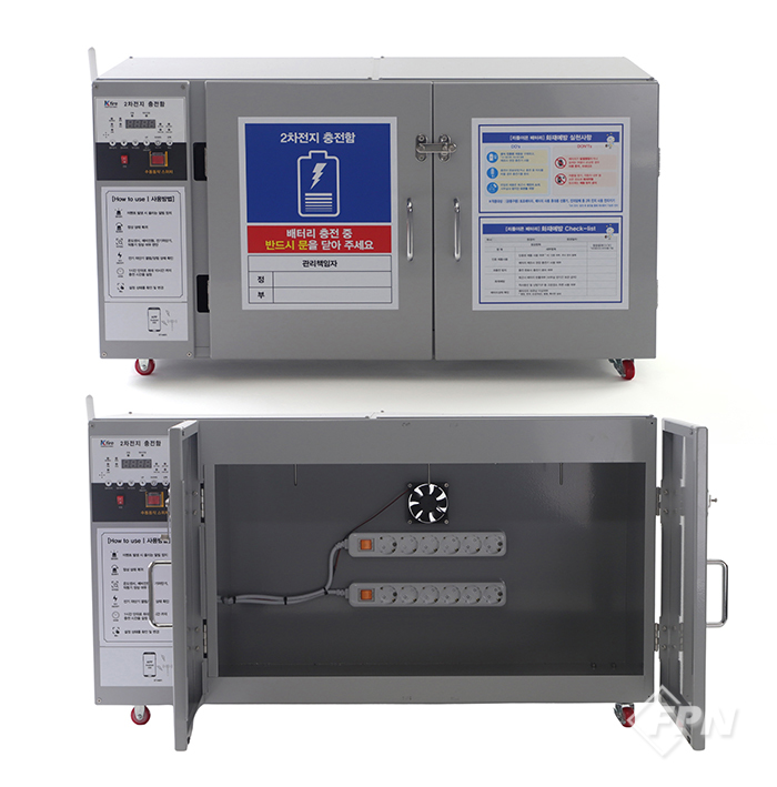 내부에는 3개의 온도 센서와 2개의 소화약제 방사 노즐이 설치됐다. 배터리 충전 시 화재를 자동으로 감지해 소화약제를 방출한다. 발열 방지를 위한 1개의 냉각팬도 설치됐다.