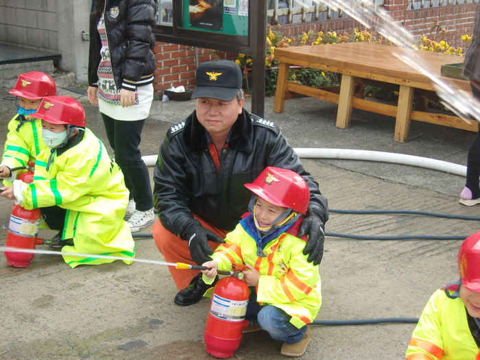| ▶ 어린이들이 물소화기를 사용하고있다. © 민병철 객원기자 ◀ | | 김천소방서(서장 안태현)는 3일 오전 10시 소방서를 김천시 대광동 소재 숲속나라 어린이집 원아들과 인솔교사들을 대상으로 소방안전교육을 실시했다. 이번 소방안전교육은 원아 34명과 인솔교사 3명이 참석했으며, 교육내용으로는 어린이들이 알기 쉽도록 동영상자료를 이용하여 119신고방법 및 피난대피요령, 가스 및 전기 안전사용요령 등을 교육했다. 아울러, 시뮬레이션 기계를 이용해 물소화기로 불을 직접 진화하기도 했으며, 특히 어린이들이 구급차에 탑승하여 기념촬영을 하는 시간도 함께 했다. 소방서 관계자는 “어린이들이 화재예방 및 대처방안을 어려부터 익힐 수 있는 기회를 항상 열어두고 있다"며, "소방서 견학 및 소방안전교육을 희망하는 어린이집, 유치원, 학교에서는 김천시 방호구조과(054-436-2119)로 접수하실 수 있다”고 전했다. 민병철 객원기자 minbc72@korea.kr