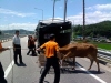 울진소방서 119구조대는 지난 26일 오전 11시경 소가 난동을 부린다는 신고를 접수받고 울진읍 읍남리로 출동했다. 현장에는 트럭에서 소를 내리던 도중 흥분한 소가 주인을 뿔로 받아 경상을 입히고 도주하여 4차선 국도로 도망을 가 인근 주유소와 도로상에서 날뛰어 교통사고 유발 등 2차사고로 이어질 위험이 큰 상황이었다. 계속 소의 뒤를 따르던 구조대는 구조차량과 인근을 지나던 차량의 협조로 도로를 차단하여 소를 로프로 안전하게 포획해서 주인에게 인계했다. 현장에 출동한 구조대원은 “차량등으로 동물을 운송할 경우 스트레스를 받아 난폭해 질 수 있으므로 내리는 과정에서 안전조치를 확실히 해야한다”며 관계자들에게 주의를 촉구했다.