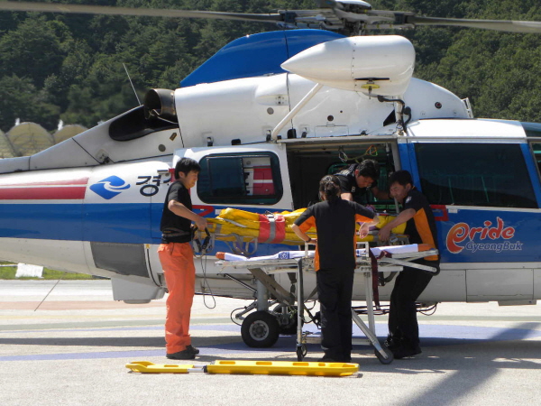 울진소방서(서장 류수열)는 지난 8일 울진군 북면 응봉산 7부 능선에서 응급환자가 발생했다는 신고를 접수받고 출동했다. 사고 현장에는 등산객 박모(52세, 여)씨가 발목골절 부상을 입고 하산하지 못하고 있던 상황으로 출동한 소방관들에 의해 응급처치를 받은 후 산 정상 부근 헬기 착륙장으로 이동해 소방본부 소속 헬기로 병원까지 이송됐다. 울진소방서 구조 관계자는 “울진군 응봉산의 일부 등산로는 험한 지형이 많아 등산객들의 사고가 빈번히 일어난다”며 “무리한 등산은 자제하여 안전한 산행을 해줄 것”을 당부했다. 김중하 객원기자 flight1011@korea.kr