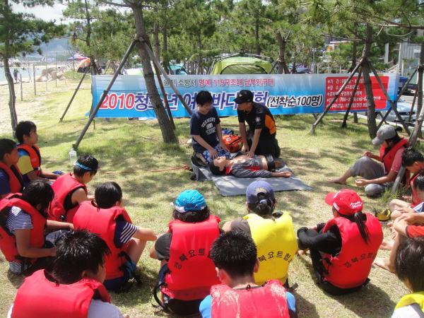 울진소방서 후포119안전센터는 청소년여름바다체험 행사장에서 참가학생 50여명을 대상으로 cpr 및 물놀이 안전에 대한 교육을 실시하고 행사진행의 안전을 위한 소방력 지원을 실시했다. 김중하 객원기자 flight1011@korea.kr