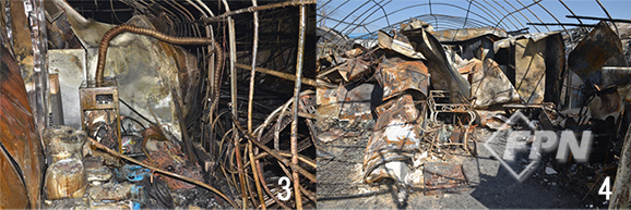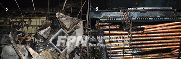 이 내부는 전기자재창고였다. 대부분의 가연물이었던 전선에서는 피복이 소실되며 화염이 크게 동반돼 나타난 현상을 보였다. 상대적으로 ③번 비닐하우스의 경우 내부에 샌드위치패널이 설치돼 있고 내부에서 발화돼 비닐하우스 철 파이프의 만곡현상이 적게 나타난 것으로 판단된다.