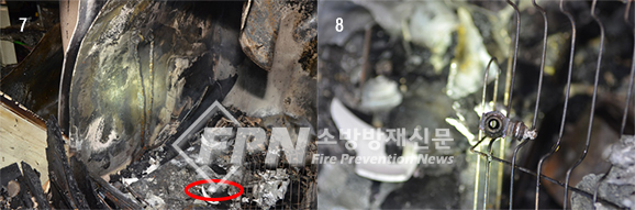 ▲ [사진 5] 국부적인 탄화지점, [사진 6] 전기적 흔적
