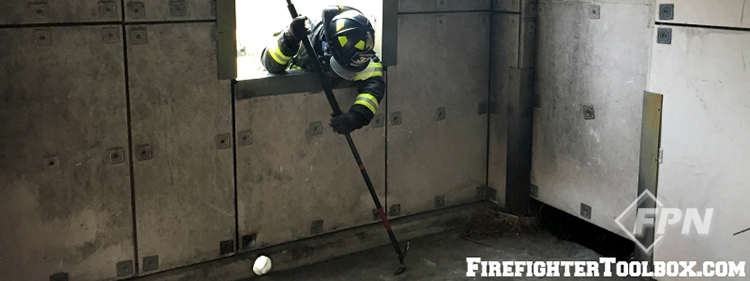 만일 단층건물일 경우 창문을 파괴ㆍ제거하고 창틀을 뜯는 게 큰 문제가 되지 않지만 다층 혹은 복층 구조의 경우 앞서 역할에서 소개한 바와 같이 창문은 사다리의 끝을 이용해 파괴하거나 소방대원이 사다리에 올라 직접 파괴할 수도 있다.