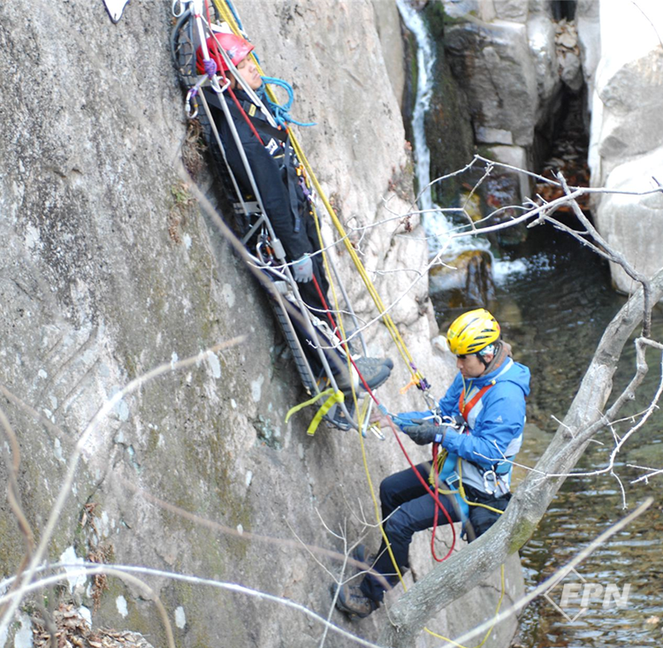 경사면에 따른 들것 로프 시스템 연결 경사면에 따라서 들것을 로프나 슬링으로 로프 시스템에 연결하는 방법은 다양하다. 현장에 도착해 예상치 못한 상황에서도 요구조자를 들것에 태우고 안전한 지역으로 이동할 수 있는 연결이 필요하다. 장남중의 로프이야기에서 제시하는 방법은 구조대가 선택할 수 있는 방법 중 하나일 뿐이다.