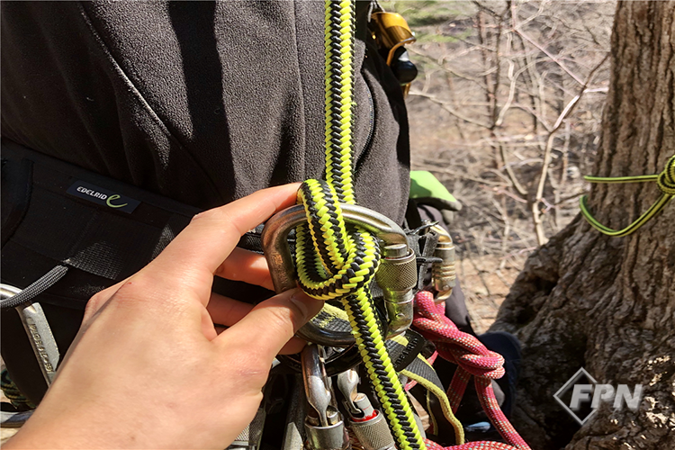 “로프를 이용한 하강 시 로프 끝에 이르면 매듭을 짓고(만들고) 기다려라”는 표현이 있다. 이는 암벽이나 빙벽 등반은 물론 수목 관리를 위한 더블로프테크닉(DdRT)을 이용해 나무에서 내려오는 작업자와 깊은 관련이 있다.