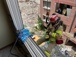 훈련 주요 내용은 ▲대원고립상황 대응 절차 ▲현장 탈출 및 장비 사용법 ▲붕괴 현장 요구조자 탐색 ▲탐색 구조장비 사용법 등이다.