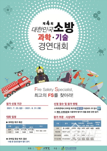 코로나19 확산세로 인해 비대면으로 열리는 이 대회는 한국소방안전원 홈페이지(www.kfsi.or.kr) 또는 퀴즈앱(땡기지)에서 오는 31일까지 접수가 가능하다. 이후 땡기지 앱에서 예선과 결선이 진행된다.