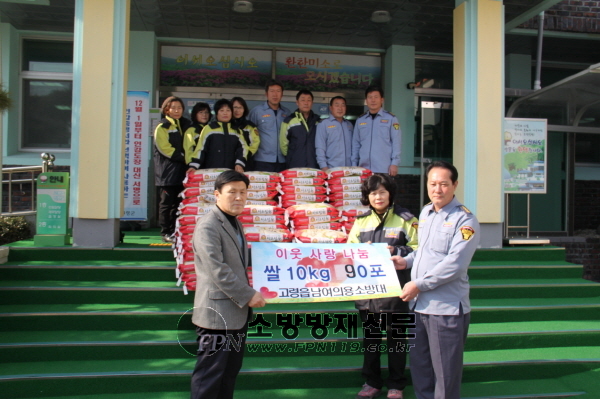 고령소방서(서장 이진우) 고령읍 남녀의용소방대(대장 이무호, 여성대장 김경수)는 지난 30일 고령읍사무소를 방문해 관내 어려운 이웃의 따뜻한 겨울나기를 위한 사랑의 쌀 90포(10kg)를 기탁해 주위의 귀감이 되고 있다. 고령읍 남녀의용소방대는 불우이웃을 위한 김장 담기 등 매년 주위의 어려운 이웃에게 사랑의 전도사로 봉사활동을 펼치고 있으며 아름다운 지역사회를 만드는데 앞장서고 있다. 이무호 의용소방대장은 “대원들의 작은 정성이 사회적 약자인 어려운 이웃에 전달되어 모두가 함께하는 공동체 분위기를 형성해 조금이나마 따뜻한 고령을 만드는데 도움이 되고자 한다”라고 말했다. 박은정 객원기자 silver1130@korea.kr