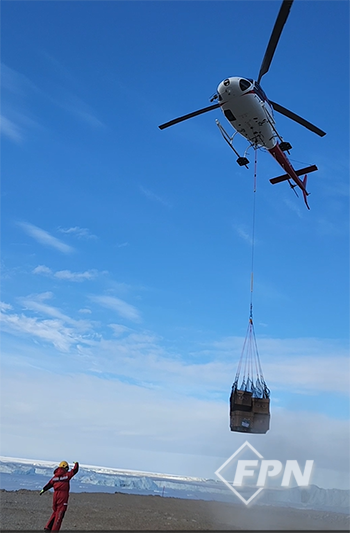 공중에서는 헬기로 화물을 옮기는 하역작업이 진행됐다. 조디악 보트 운행과 헬기유도 업무 모두 안전대원인 내가 담당했다. 해상하역과 헬기하역 모두 태어나 처음 해보는 일이었다. 컨테이너를 옮기기 위해 크레인에 연결하는 작업과 해체하는 작업 역시 처음이었다.