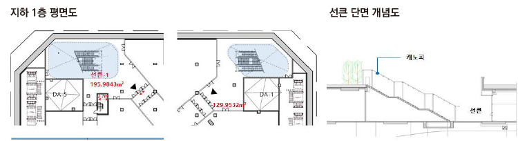 그러나 건축법령에는 지하 개방공간의 설치기준에 대한 세부 규정이 없다. 초고층법령에서 선큰의 세부 설치기준을 규정하고 있는데 대부분 이 기준을 준용해서 설계한다고 보면 된다.