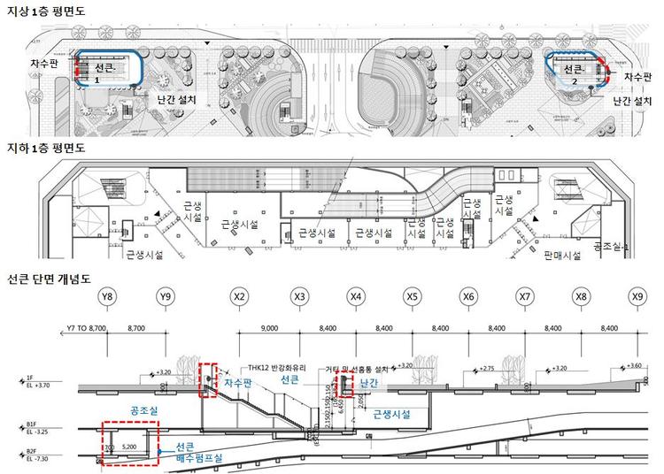 선큰에 설치해야 할 설비는 선큰의 구조가 옥외에 개방된 특수성으로 ‘침수 방지시설’과 거실에서의 피난경로 상의 ‘제연설비’다. 이 두 가지 모두 중요한 역할을 한다고 할 수 있다.