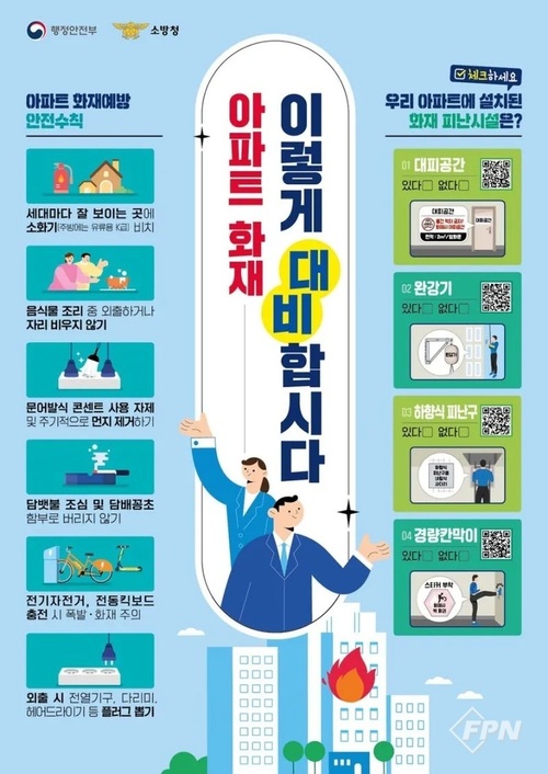 [FPN 정재우 기자] = 영암소방서(서장 김재승)는 아파트 화재 예방 안전수칙과 피난시설에 대해 안내한다고 10일 밝혔다.
