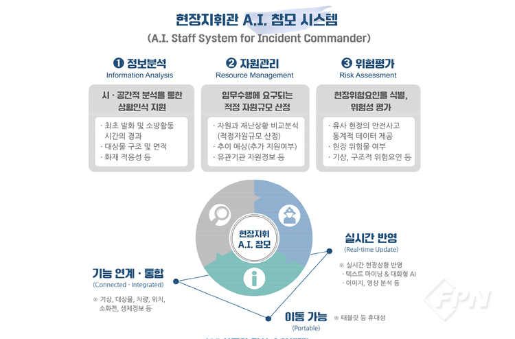 위원회가 제시한 ‘AI 참모시스템’은 ‘정보 분석’과 ‘자원 관리’, ‘위험성 평가’ 등 세 가지 핵심 기능을 중심으로 현장지휘관이 적시에 최적의 의사결정을 내릴 수 있게끔 지원하는 체계다.
