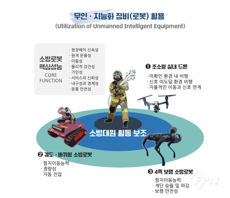 또 이 같은 무인ㆍ지능화 장비의 활용 확대를 위해선 핵심 수요자인 소방의 정책 추진 의지와 주도가 중요하다고 강조한다. 관련 다부처 협력사업 시에는 시작 단계부터 적극 참여해 소방활동의 특수성을 반영해야 한다고 조언하기도 했다.