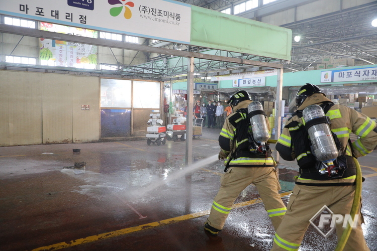 [FPN 정재우 기자] = 마포소방서(서장 서영배)는 지난 19일 마포농수산물시장에서 화재순찰로봇을 활용한 민ㆍ관 합동훈련을 실시했다고 밝혔다.