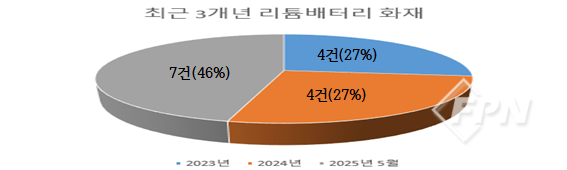국가화재정보시스템 통계에 따르면 지난달 기준 서부소방서 관내 리튬배터리 화재 건수는 7건으로 2023년(4건)과 2024년(4건)의 연간 발생 건수를 이미 넘어섰다. 이는 리튬배터리 화재 위험이 과거와 비교할 수 없을 정도로 높아졌음을 시사한다.