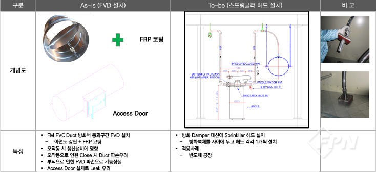 방화구획은 내화구조의 벽으로 구획하는 게 가장 완벽하지만 건축물 특성상 화재 감지 시 작동하는 기계식 방법에 따른 구획을 할 수밖에 없으므로 정상적 작동 유지ㆍ관리에 가장 안전한 방법을 선택한 후 설치해야 한다.