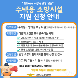[FPN 정재우 기자] = 남해소방서(서장 김상철)는 노후 아파트에 거주하며 ‘아이돌봄 서비스’를 이용 중인 가정을 대상으로 주택용 소방시설을 무상 보급한다고 11일 밝혔다.