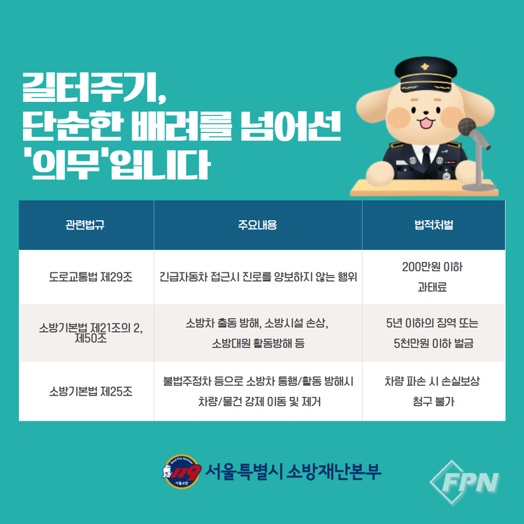 이와 함께 소방서는 소방차 등 긴급차량이 출동할 때 일반 운전자에게 요구되는 올바른 양보법을 홍보하고 있다. 이는 재난 대응 골든타임을 확보하고 시민의 안전의식을 높이기 위함이다.