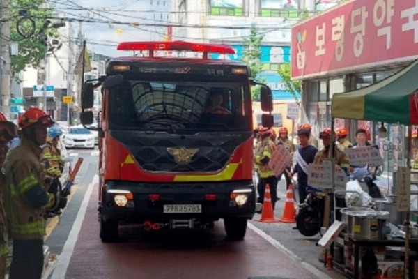 [FPN 정재우 기자] = 대덕소방서(서장 김종화)는 20일 중리전통시장에서 자율소방대와 함께 소방차 진입로 확보 훈련과 화재 예방 캠페인을 진행했다고 밝혔다.