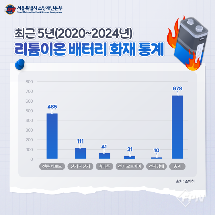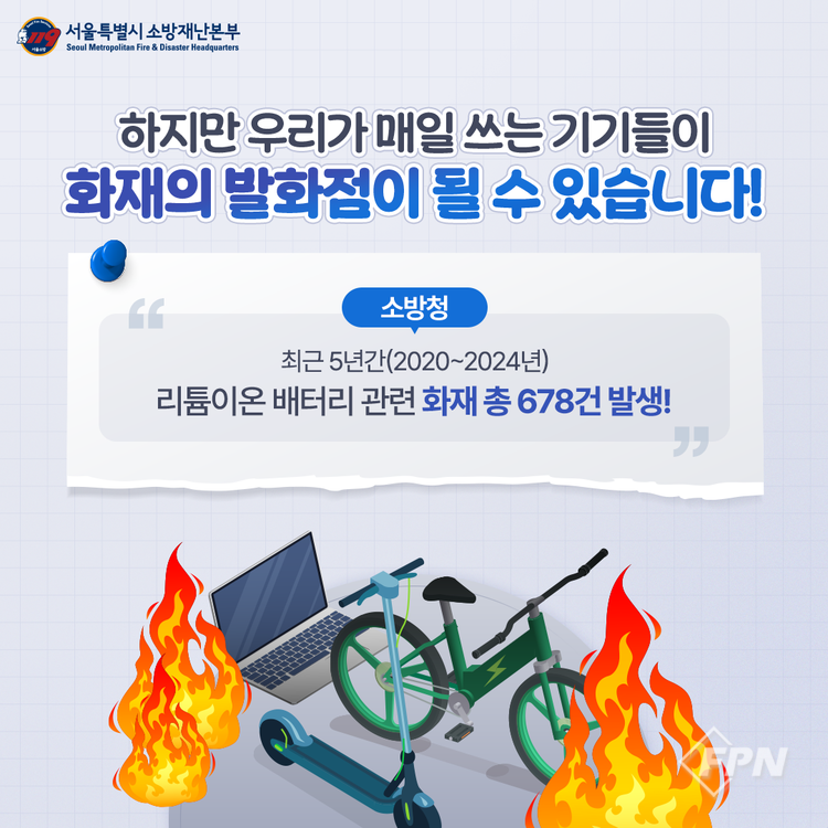 [FPN 정재우 기자] = 종로소방서(서장 장만석)는 개인형 이동장치(PM) 리튬이온 배터리 화재 예방을 위해 종합적 예방대책을 집중 추진한다고 17일 밝혔다.