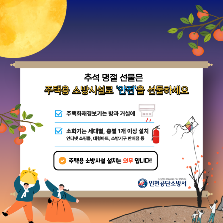 소방서는 온 가족이 함께하는 명절을 앞두고 안전한 주거환경을 만들기 위해 추석 선물로 주택용 소방시설을 권장하고 있다.
