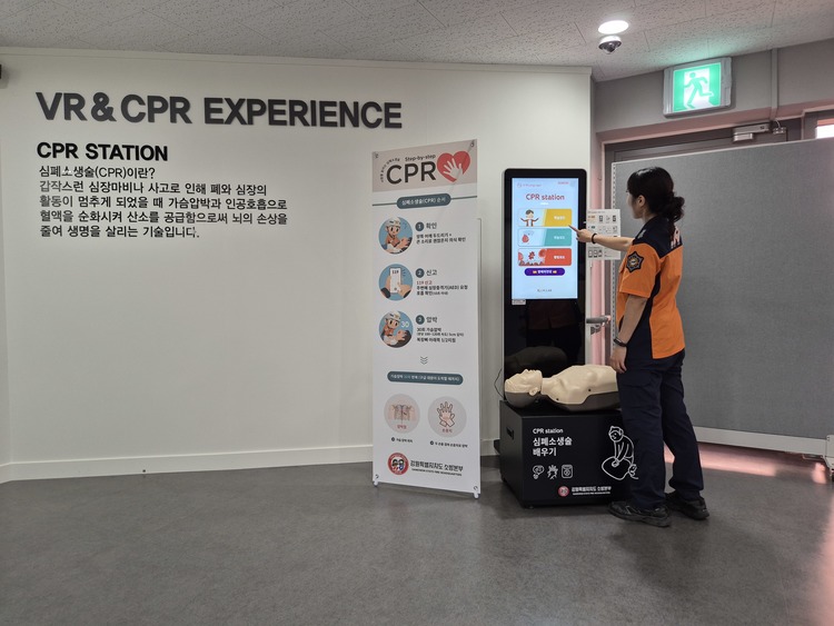 CPR EXPERIENCE는 실물 마네킹과 심폐소생술 교육 장비를 갖춘 체험형 시설이다. 시민 누구나 무료로 심폐소생술을 실습할 수 있다.