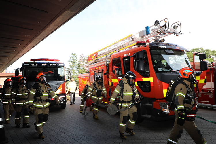 훈련은 ▲화재 신고 접수 ▲현장지휘대 설치 ▲화재진압, 인명구조, 다수사상자 대응 ▲전력ㆍ가스 차단 및 복구 ▲교통 통제 등으로 진행됐다.