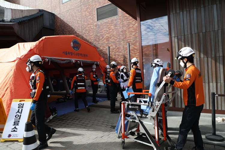 구급대원들은 응급의료소를 설치하고 중증도 분류(Triage)와 응급처치, 후송체계 운영을 수행했다. 서울대학교병원과 서울시 DMAT, 중구보건소는 부상자 분류ㆍ응급이송, 응급처치 시뮬레이션을 통해 현장 의료대응 능력과 협조체계의 완성도를 높였다.