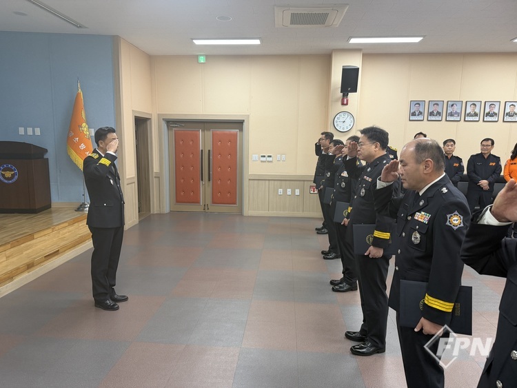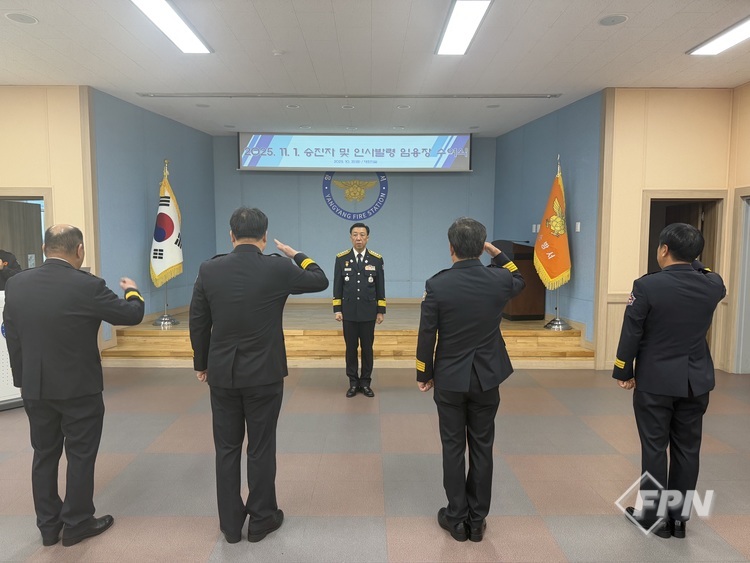 [FPN 정재우 기자] = 양양소방서(서장 강복식)가 31일 오전 본서 대회의실에서 2025년도 11월 1일자 승진ㆍ인사발령 대상자 임용장 수여식을 개최했다.