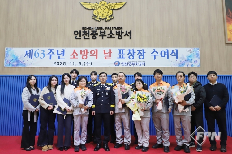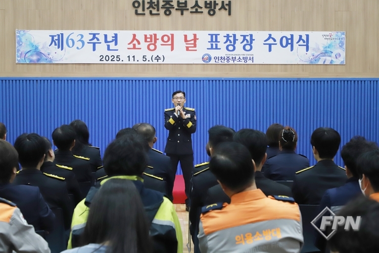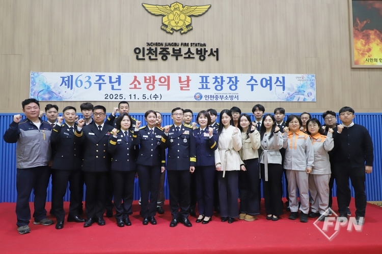 [FPN 정재우 기자] = 인천중부소방서(서장 김현)가 5일 본서 강당에서 ‘제63주년 소방의 날’ 표창장 수여식을 개최했다.