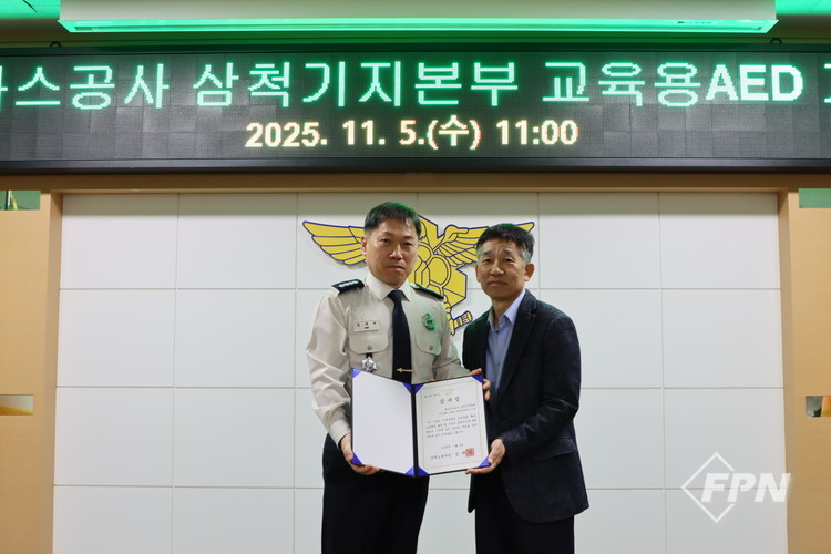 [FPN 정재우 기자] = 삼척소방서(서장 김재석)가 5일 오전 11시 본서 대회의실에서 한국가스공사 삼척기지본부(본부장 김종성)의 지정기탁물품 기부에 따른 기증식을 개최했다.