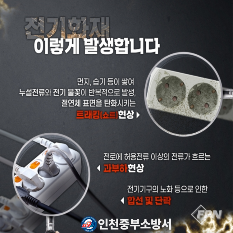 [FPN 정재우 기자] = 인천중부소방서(서장 김현)는 겨울철을 앞두고 난방기기와 전열기구 사용이 늘어남에 따라 전기화재 예방을 위한 안전수칙 준수를 당부한다고 6일 밝혔다.