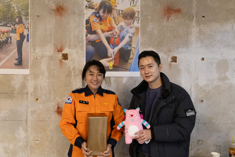 ![]() ▲‘특색있는 안전교육’ 금메달을 수상한 김영혜 소방장(왼쪽)과 성진우 소방교 |