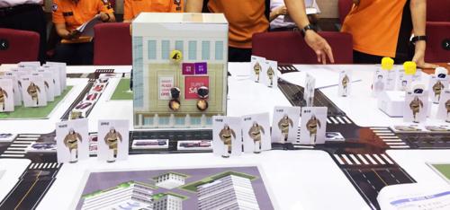참가자들은 각종 구성품을 활용해 사고 현장과 중증도분류소, 이송대기소, 상황판, 이송 병원을 차례대로 배치합니다. 이후 진행자가 상황을 전파하면 분류반은 환자를 긴급(적색)과 응급(황색), 비응급(녹색), 사망(흑색) 등으로 분류합니다. 처치반은 환자 응급처치 후 중증도 분류표에 관련 내용을 기록하면 됩니다.