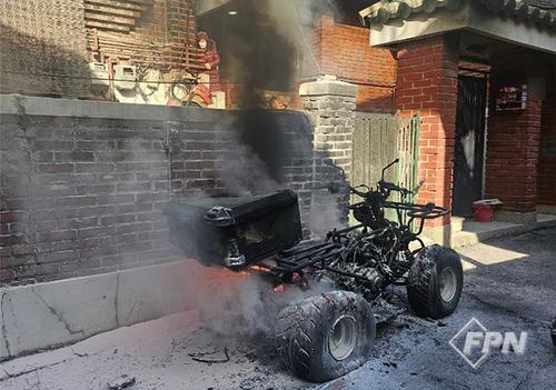 [FPN 김태윤 기자] = 21일 오전 10시 40분께 경기 하남시 덕풍동의 한 주택가 골목에 있던 사륜 오토바이에서 불이 났다.