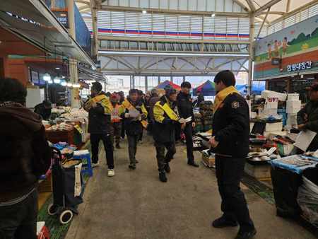 이날 행사에는 소방공무원과 의용소방대원 등 30여 명이 참여해 시장 상인과 방문객들을 대상으로 ▲주택용 소방시설 설치, ‘고향집 안전 선물하기’ ▲전통시장 다중이용시설 화재 예방 안전수칙 ▲겨울철 3대 전기용품 안전 사용 ▲119화재안심콜 가입 ▲겨울철 산불 예방 등을 홍보했다.