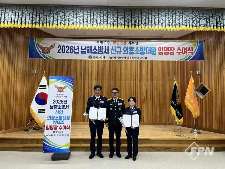 [FPN 정재우 기자] = 남해소방서(서장 정동철)는 지난달 31일 신임 의용소방대장ㆍ부대장, 신규 의용소방대원에 대한 임명장 수여식을 개최했다고 밝혔다.