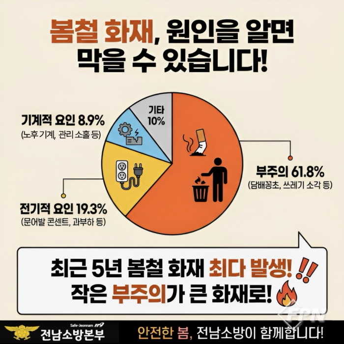 [FPN 정재우 기자] = 구례소방서(서장 한만조)는 봄철 부주의로 인한 화재 예방에 각별한 주의를 당부한다고 1일 밝혔다.