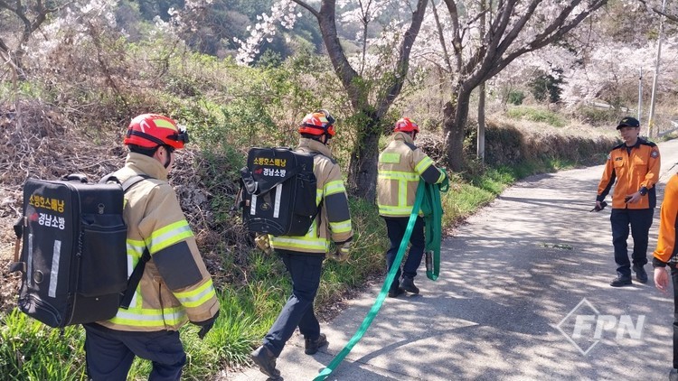 [FPN 정재우 기자] = 경남고성소방서(서장 전수진)가 2일 거류면 장의사 인근 임도에서 실전형 산불진압훈련을 실시했다.