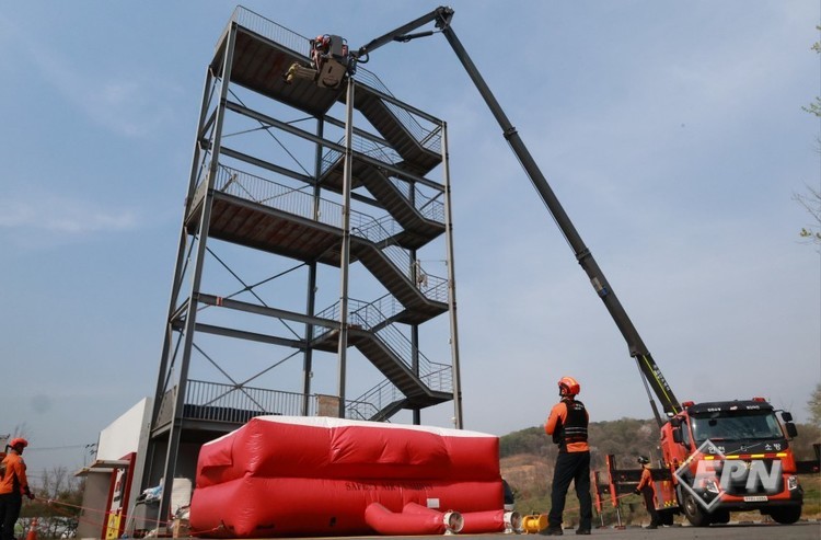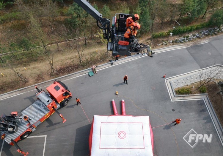 이번 훈련은 경기 부천시 호텔 화재 등 고층 건물 화재 시 대피로가 차단된 상황에서 구조대상자의 최후 생존 수단인 공기안전매트의 활용 빈도가 높아짐에 따라 현장 대원들의 완벽한 초기 대응 능력을 배양하기 위해 마련됐다. 인천소방본부 구조팀도 참여했다.