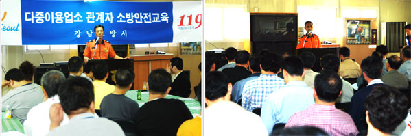 이에 따라 강남소방서는 종합적인 소방안전대책을 마련하여 소방, 전기, 가스 시설별 특화된 안전점검을 실시하는 등 거주민들의 초기 대응능력 향상을 위한 홍보와 교육을 통해 철저한 관리체제를 유지하면서 안전하고 살기 좋은 강남구를 만들어 가는데 기여하고 있다. 강남소방서 유명수 서장은 “과거 구룡마을 화재발생 빈도가 높았지만 전 직원들이 특별 화재예방 관리에 앞장서 안전예방 홍보와 교육 등이 생활화되어 임기동안 단 한 차례의 화재도 발생하지 않을 만큼 주민들에게도 상당한 호응을 얻고 있다”고 밝히면서 “화재예방에 자발적으로 참여하는 풍토 조성이 중요하다”고 말한다. 실제 강남소방서의 홍보와 교육에 대한 열의는 다른 지역의 기관들보다도 매우 뜨겁다.