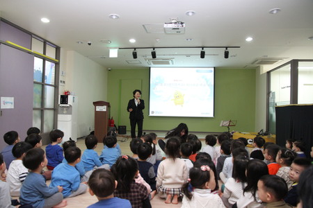 | ▲ 삼전동에 위치한 러닝트리유치원 아이들에게 소방안전교육을 하고 있다. © 김민규 객원기자 |