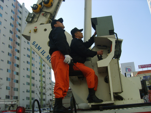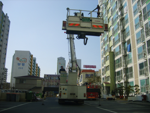 며칠 전부터 훈련을 하기위해서 고가사다리차가 부서하여 고층으로 탑을 펼 수 있는 공간을 확보하기 위하여 아파트 관계자에게 전화와 공문을 통하여 양해를 구하였다. 아파트 훈련 현장에 도착하자 사전에 훈련도움 요청덕분에 사다리차 부서공간이 확보되었다. 화재가 발생하여 사람이 고립되었다는 가정 하에 훈련에 임하는 대원들의 얼굴에는 긴장감이 돈다. 고가 사다리차를 전개 할 수 있는 공간이 확보된 가운데서 가상의 화점인 9층까지 사다리차 탑을 전개하는 데 약 6분이 소요되었다.