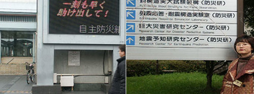 ▲그림1. 교토역 앞 대형모니터방재지식 24시간 홍보 그림2. 교토대학방재연구소안내표지와 필자