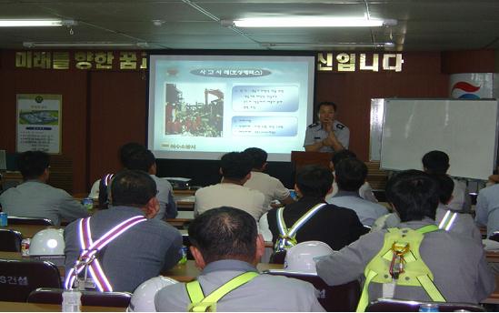 여수소방서(서장 강대중)에서는 여수국가산업단지내 신규 및 증설 현장에서 발생할 수 있는 화재 및 재난 잠재위험을 예방하고 사고발생시 신속한 대응조치로 대형사고를 방지하기 위해 공사현장 근로자의 안전의식을 고취시켰다. 소방서에서는 지난 6월부터 7월까지 제일모직 등 8개업체 공사현장 안전관리책임자, 간부사원, 현장근로자 등 600여명을 대상으로 공사현장을 직접 방문하여찾아가는 교육을 실시하였다. 주요교육내용은 파워포인트를 활용한 산업재해사례를 중심으로 작업공정의 유해 및 위험관리요령, 소화기 등 소방시설 사용법 및 관리요령, 119신고․진화․피난 등 화재발생시 대처요령, 심폐소생술 실습 및 체험, 공사현장 안전사고 예방요령 등이다. 정대원 산업안전담당은 공사현장에서 전기․가스․위험물 등 화기취급시설 안전관리를 철저히 하고, 작업을 할때는 안전장비 착용 등 안전수칙을 반드시 준수하여 단 한건의 화재 및 안전사고가 발생하지 않도록 각별한 주의를 당부하였다.