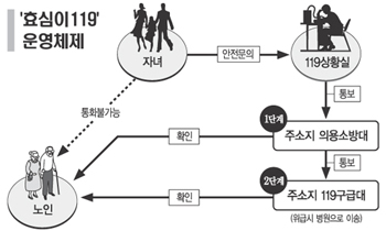 65세 이상의 독거노인과 노령화 추세의 급속화에 따라 실시되는 이 서비스는 단계적으로 실시될 예정이며, 이를 통해 119전화·인터넷·휴대전화문자를 통해 보호자 등으로부터 확인요청 또는 신고를 접수받아 자원봉사자나 119구조·구급대가 현장을 확인, 보호자 등에게 통보하거나 응급환자 발견 시 처치·이송하는 등의 방법으로 시행한다. 또한 전기·가스·수도·적외선활동센서 등 센서 및 무선페이징시스템을 활용해 응급상황 발생을 자동으로 감지하는 서비스로 올 하반기에 시스템 개발 및 시범사업을 실시하고 시범사업 결과를 바탕으로 내년부터 전국적으로 확대할 계획이다. 이와 함께 긴급전화 단말기 ‘무선페이징 시스템’도 소방서에서 고령화되면서 크게 늘어나고 있는 노인 구급수요에 적극대처하고 노인들에게 완벽한 서비스를 제공키 위해 다양한 시책 등을 발굴, 시행하고 있다. 이처럼 고령화 사회를 대비해 소방방재청은 만발의 대비를 하며 고령화 속도에 발맞추고 있다. 환영받지 못하는 무선페이징? 하지만 무선페이징을 모두 달갑게 받아들이지는 않았다. 1997년부터 수백억원을 들여 추진했던 ‘무선페이징사업’이 기기의 잦은 고장과 오작동, 이용률 저조 등으로 많은 문제점도 낳고 있다. 10년 째 홀로 사는 박모(69)씨는 소방서에서 설치해 준 무선페이징 전화기만 보면 겁부터 난다고 한다. 5년 전 소방서에서 급할 때 연락하라고 무선페이징 단말기(전화기)를 설치해 주면서 실수로 잘못 누르면 안된다고 했기 때문이다. 박씨는 실수할 것이 걱정되는 데다 사용할 일도 별로 없어 신문지로 단말기를 덮어놓고 일반전화기를 구입해 사용하고 있다. 또, 지난 2004년 무선페이징을 설치한 장애인 한모(53)씨는 1년도 되지 않아 무선페이징을 내다버렸다. 무슨 이유인지 무선페이징 단말기를 설치한 뒤 전화통화가 제대로 되지 않았다. 한씨는 이 같은 사실을 소방서에 수차례 얘기했지만 고쳐주거나 새로 설치해주겠다는 등의 어떠한 답변을 듣지 못해 결국 내다버린 것이다.