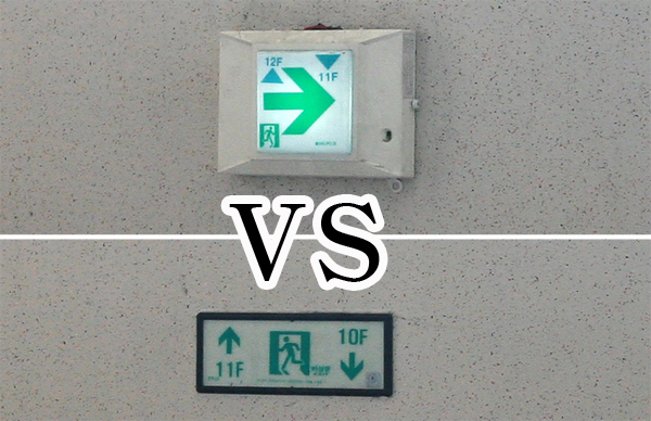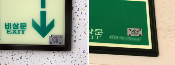 10층 이하 피난…소방법이 외면 10층 이하 부분에 유도등이 아닌 축광유도표지가 설치되고 있는 것은 잘못된 소방법규 때문이라는 지적이 크다. 국내 소방법에서는 ‘일반숙박시설 및 오피스텔 또는 지하층, 무창층 및 11층 이상의 부분’에 유도등을 설치하도록 규정되어 있다. 아파트 및 고층건물들은 대부분 해당 규정에 포함되며 그 밖의 장소에는 유도표지를 설치하도록 하고 있다. 이 같은 소방법 때문에 아파트 및 건축물을 시공하는 시공사는 법적요건에만 맞도록 설계하고 건축물을 짓고 있는 것이다. 특히, 대부분의 아파트 주민들은 소방용품에 대한 전문성이 없고 평상시 사용하는 용품이 아니라는 이유로 큰 관심이나 지식을 갖고 있지 않기 때문에 이 같은 사실을 국민들은 숙지하지 못하고 있는 실정이다. 안전을 도외시함은 물론, 불합리한 소방법이 존재하고 있는 가장 근본적인 이유다. 거주자들은 11층 이하에 유도표지가 설치되어있는지, 11층 부터는 불이 점등되는 유도등이 설치되는지 조차 모르고 있다. 경기도 안양에 위치한 모 아파트 부녀회 회장 김 모씨(53)는 취재진이 이 같은 사실을 알리며 인터뷰를 요청하자 “소방법이 10층 이하에 사는 사람들의 피난은 외면하고 있는 것이냐”며 “누구는 표지를 보고 대피하고 누구는 불빛을 보고 대피하라는 것은 말도 안된다”고 반발했다. 또, 다른 주부 박 모씨(43)는 “하루종일 문이 닫혀있고 조명도 센서조명이라 캄캄한데 유도표지는 빛날 일이 없다”며 “화재시 전혀 표시가 안되는 비상구 유도판때기를 10층 이하에는 설치해도 된다는 것은 너무 날림형식”이라고 말했다. 유도등 vs 유도표지? 유도등은 화재시 인명피난을 유도하기 위한 장치다. 정상상태에서는 상용전원에 따라 켜지고 상용전원이 차단(정전 등)되는 경우에도 비상전원의 기능이 있기 때문에 자동전환되어 점등이 됨으로써 인명의 피난을 효과적으로 유도할 수 있다. 반면, 유도표지는 소방법에서 조차 피난구의 방향을 표시하는 유도표지로 정의하고 있으며 유도등은 화재시에 긴급대피를 안내하기 위하여 사용되는 등으로 정의된다. 이렇듯 등과 표지는 명백한 차이가 있다. ‘등’은 어두운 곳을 밝히거나 신호를 보내는 기구의 사전적 의미를 띄고 있지만 표지는 ‘사물 구별을 위한 표시’를 나타낸다. 특히, 아파트나 건축물의 층계의 경우 화재시 정전으로 인해 암흑상태가 되어 버리기 때문에 층계 이동시 유도표지의 빛으로 신속한 대피와 식별을 기대하기란 거의 불가능한 것이 사실이다. 빛 축적 못한 유도표지 종이쪼가리 불과해 축광유도표지는 외부의 전원을 공급받지 않고 전등이나 태양빛 등을 흡수해 이를 축적시킨 상태에서 일정시간 동안의 발광을 통해 어두운 곳에서 문자 등을 식별할 수 있도록 만들어진 형식의 소방용 제품이다. 아파트나 고층 건물의 경우 각 계단실 창문 밑 부분이나 방호구획 입구쪽에 설치되기 때문에 태양빛을 직접적으로 받을 수 없는 경우가 많다. 특히, 소량의 빛을 받아 축적을 시키더라도 해가 저문 후 빛을 받지 못한 상태로 약 1시간 이상이 지나면 발광되는 빛은 거의 없다는 것이 전문가들의 의견이다. 즉, 늦은 밤 화재가 나면 층계 등에 부착되어 있는 축광유도표지는 무용지물이 되는 셈이다 . 한국소방검정공사에서 운영중인 ‘축광유도표지 및 축광위치표지의 성능시험기술기준’을 살펴보더라도 200lx밝기의 광원으로 20분간 조사시킨 상태에서 60분간 발광시킨 축광유도표지를 20m떨어진 위치에서 식별하는 방식으로 시험을 운용하고 있다. 시험기술기준상 빛을 축적시킨 후 1시간 경과 후의 휘도가 1㎡당 7mcd(1cd는 1㎡ 촛불 하나만큼의 밝기이며 mcd는 촛불 기준 1/1000)라는 것을 감안할 때 약 1시간 반 가량이 흐른 후에 발광되는 빛은 전무한 상태에 이르게 된다.